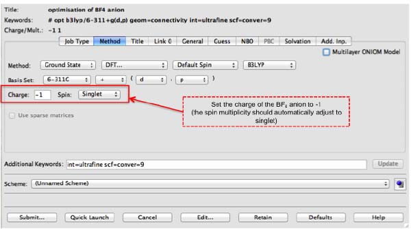 All calculations here have been performed using B3LYP/6-311+g(d,p) with the additional keywords int=ultrafine and scf=conver=9. You will need to set up your calculations with these options, they improve the convergence criteria and integration grid over the Gaussian defaults. As we are working with ions, it is important to remember to adjust the charge of the system accordingly.