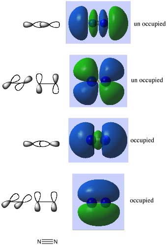 - One of the reasons N2 is so stable, is that only bonding pAO based MOs are occupied.