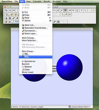 - Open the *.chk file for your N2 optimisation/frequency file. Goto the "File" pulldown menu, choose "open", then in the File type: select *.chk, and select your N2 checkpoint file