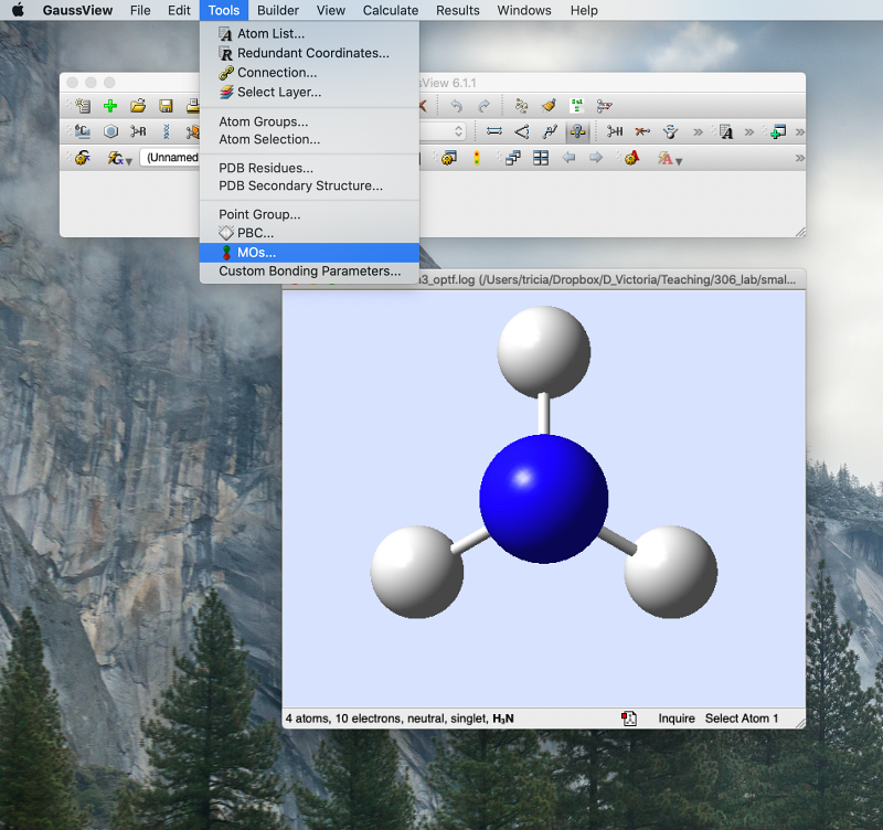 - Open the *.chk file (not the *.log file!) for final optimised NH3