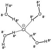 Solvation of a Cl ion (-1 charge) by water molecules