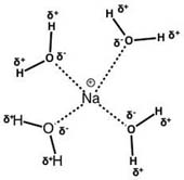 Solvation of a Na ion (+1 charge) by water molecules