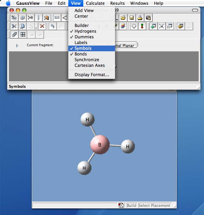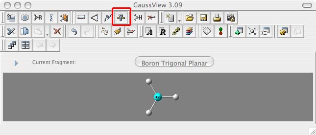 - now move the mouse to the molecule window and click once inside this window, a molecule of BH3 will appear: