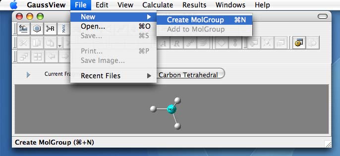 - Open a new molecule window by choosing from the main (gaussview) menu along the top of the screen "File" then "New" then "Create MolGroup"